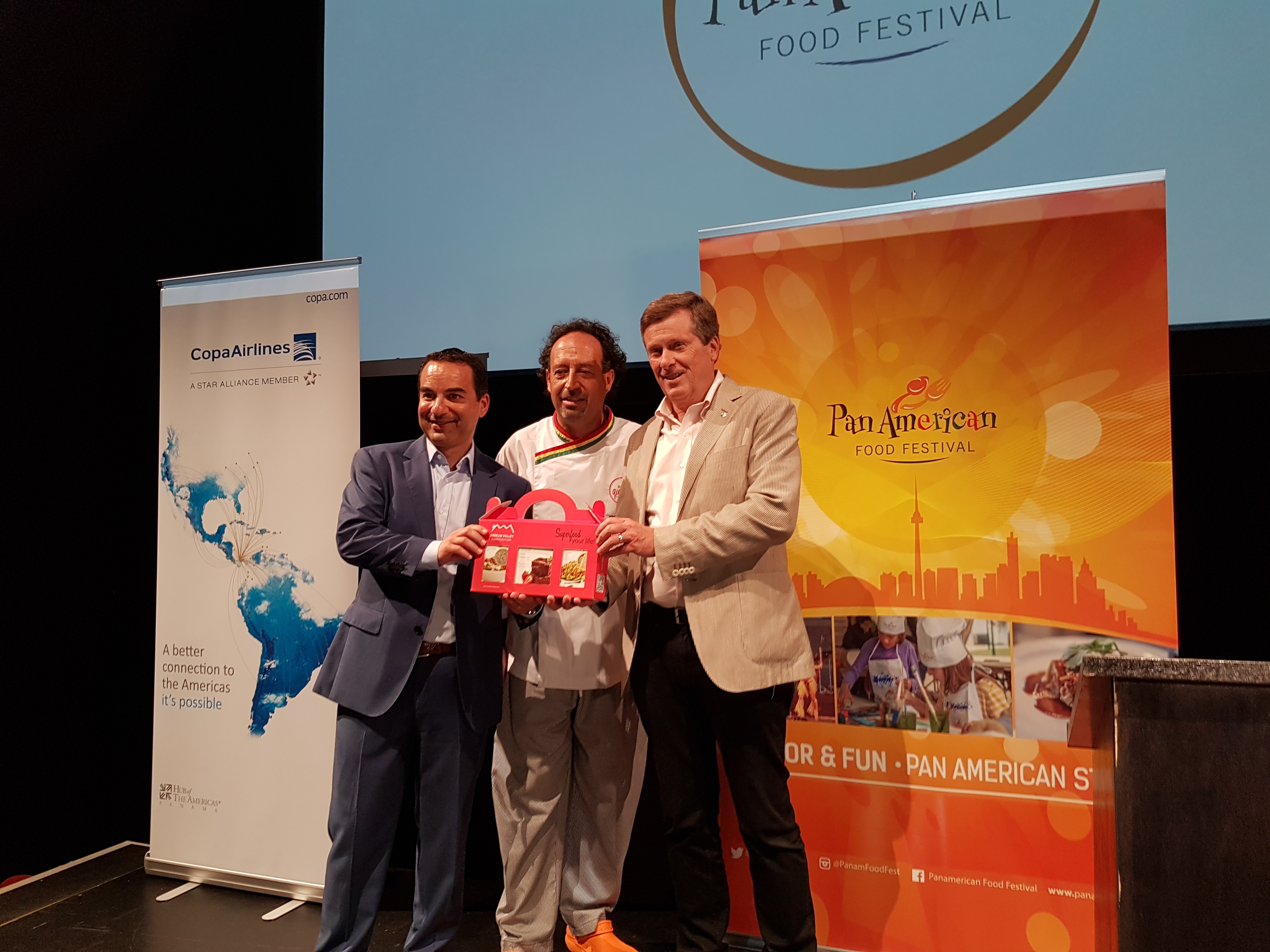 Con la presencia del alcalde de Toronto John Tory, la embajadora de Bolivia en Canadá, diplomáticos, políticos, medios de comunicación y personajes de la vida empresarial latinoamericana de Toronto, se realizó la ceremonia de apertura del Panamerican Food festival en el centro de artes Daniels Spectrum de la ciudad.