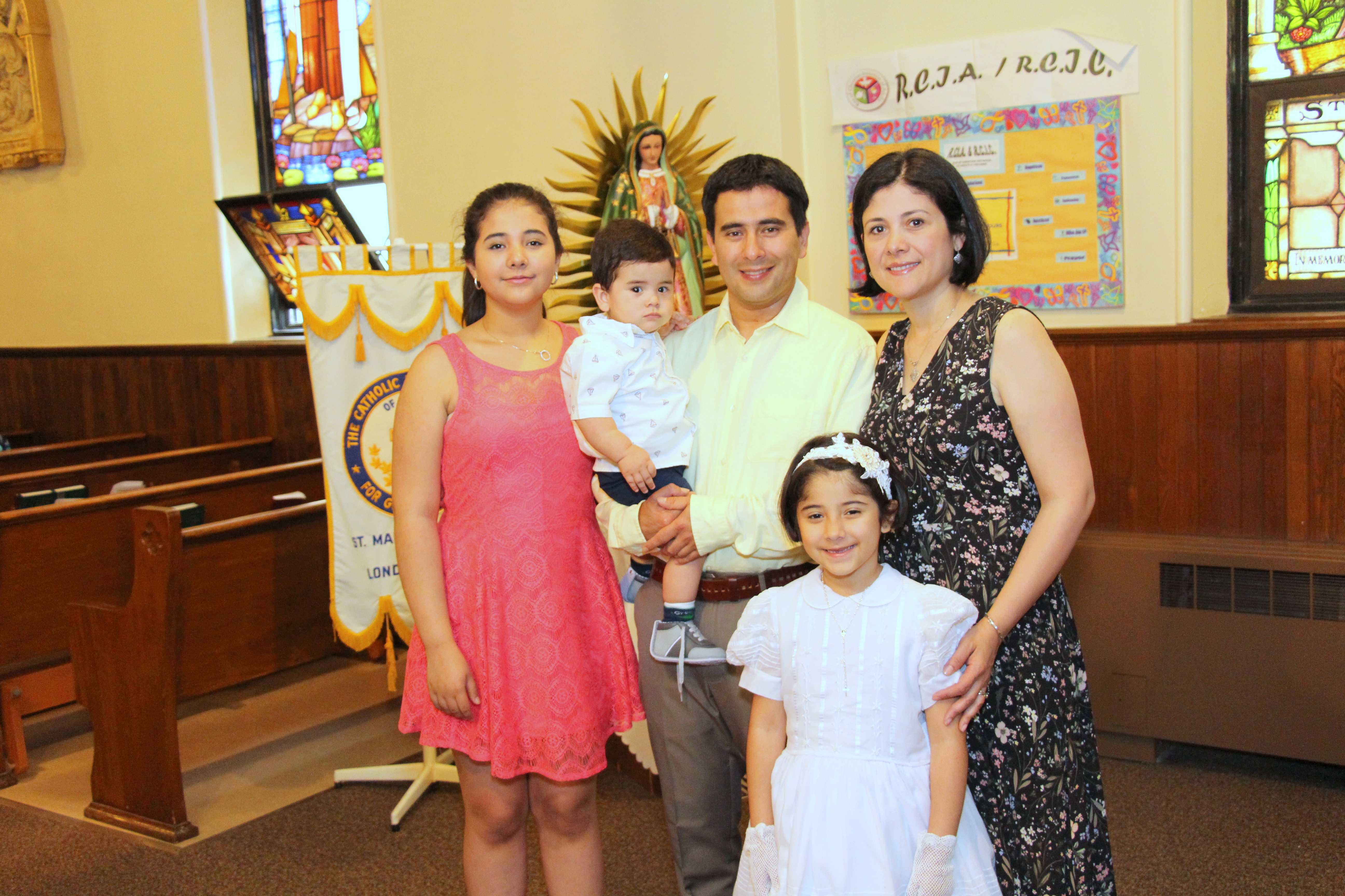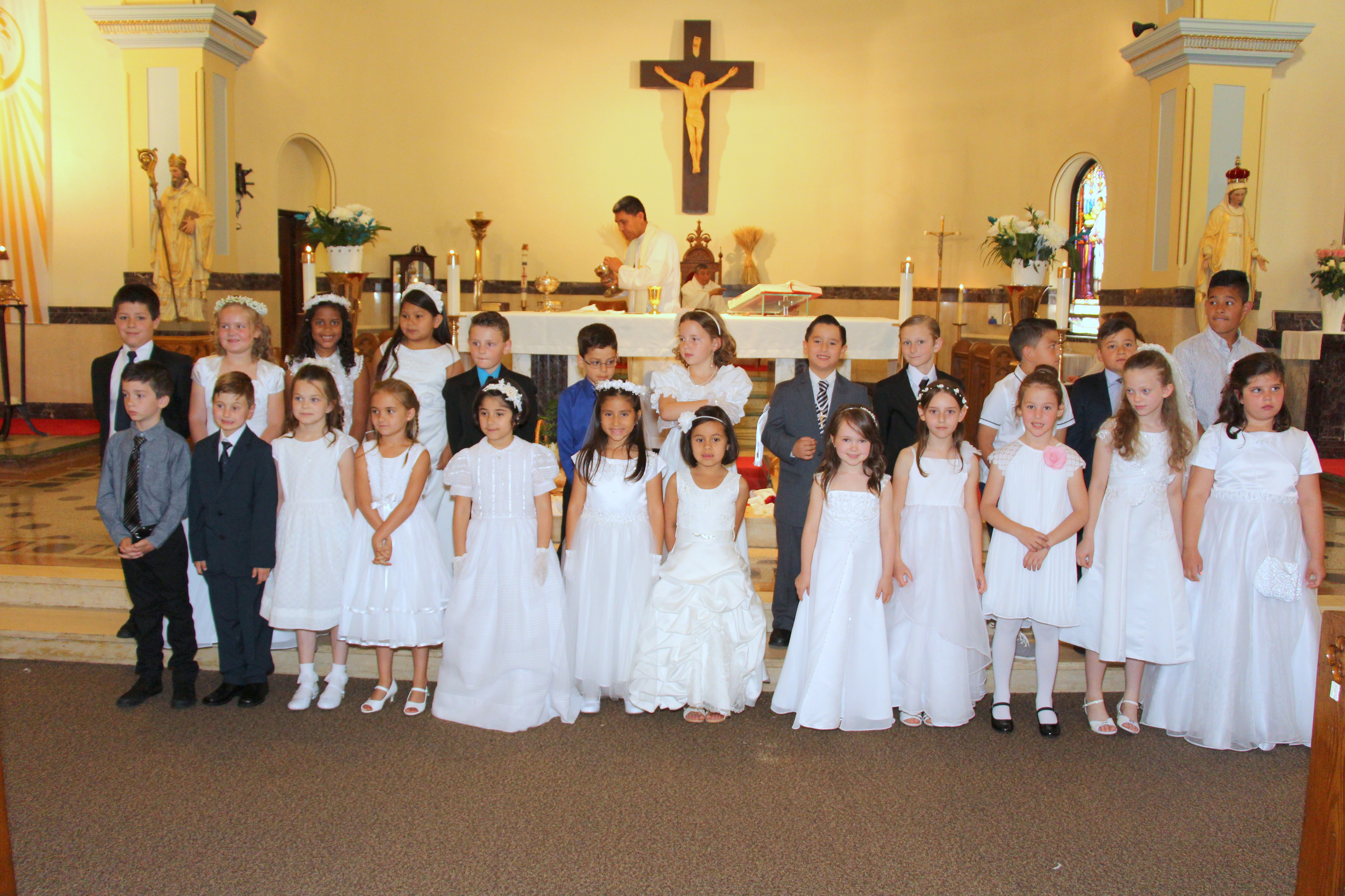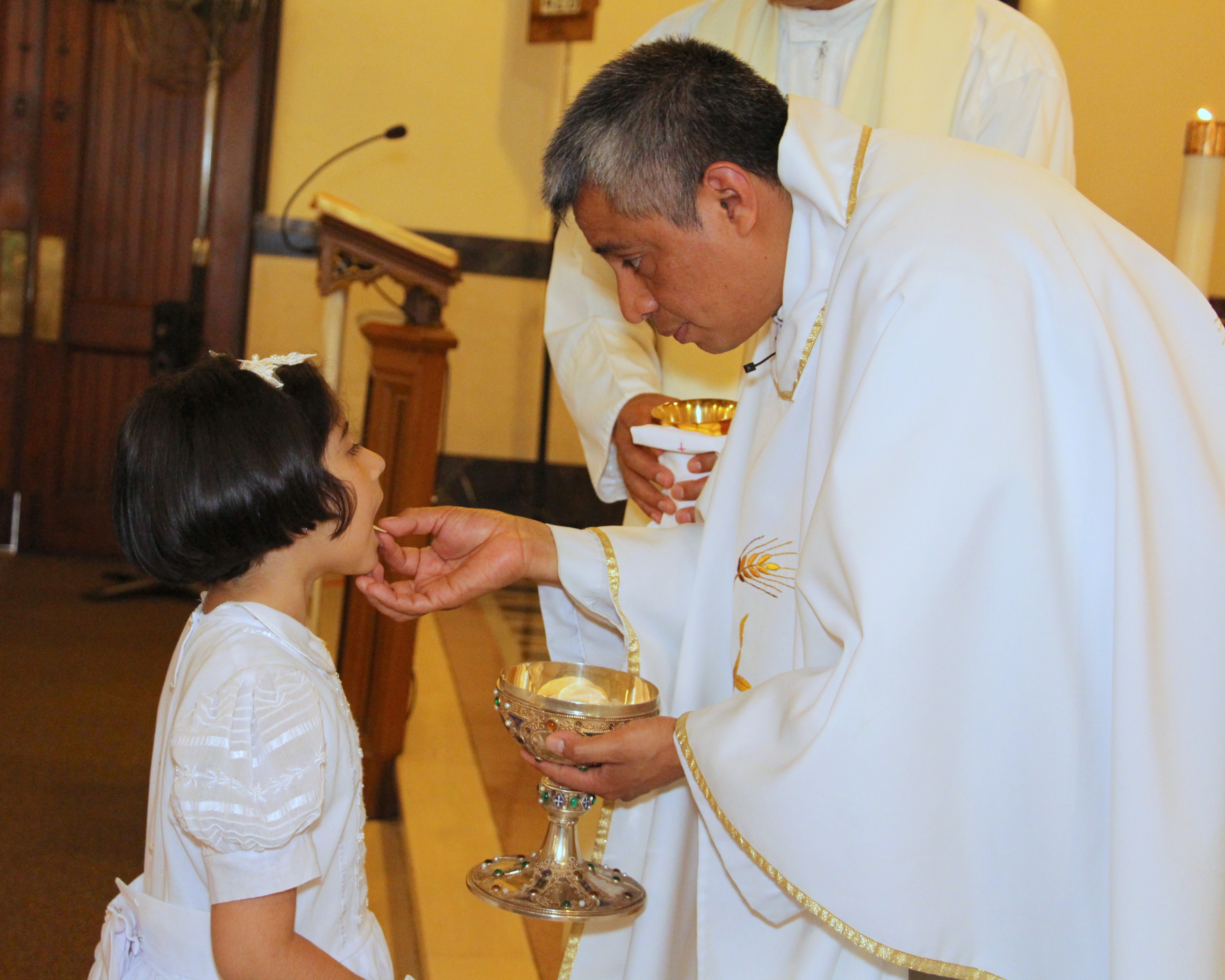 En la Iglesia de St. Francis- St. Martin Parish, se celebraron las primeras comuniones de la parroquia. En las fotos vemos a Silvana Guerrero, cuando recibía la Sagrada Comunión, de manos del Párroco José López. Silvana compartió la ceremonia con sus Padres Carlos Guerrero y Martha Quiroga, sus hermanos Karla y Pablo. En las fotos también se aprecia el grupo de niños que celebraron este sacramento de la iglesia católica.